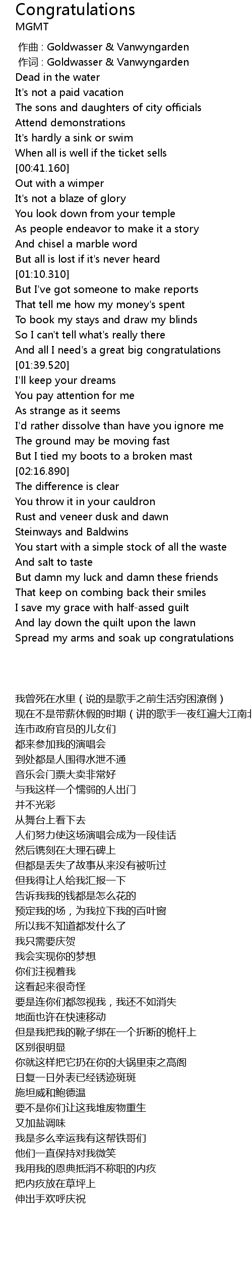 | [00:01.00] | 作词 : Goldwasser & Vanwyngarden |
