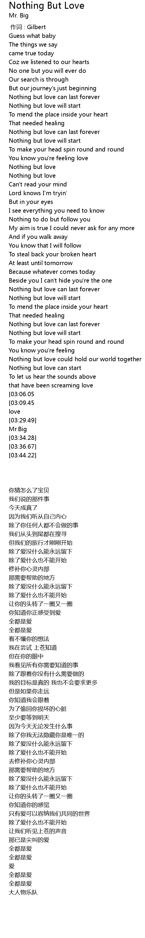 | [03:22.91][03:09.45] | Nothing but love |