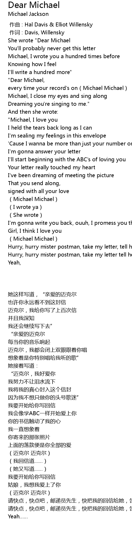 | [00:24.90] | " Dear Michael, |