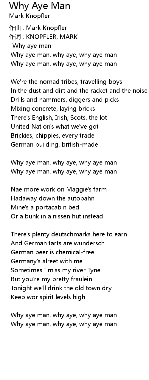 | Why aye man, why aye, why aye man |