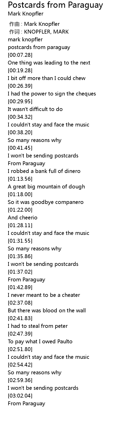 | [00:00.00] | zuo qu : Mark Knopfler |
