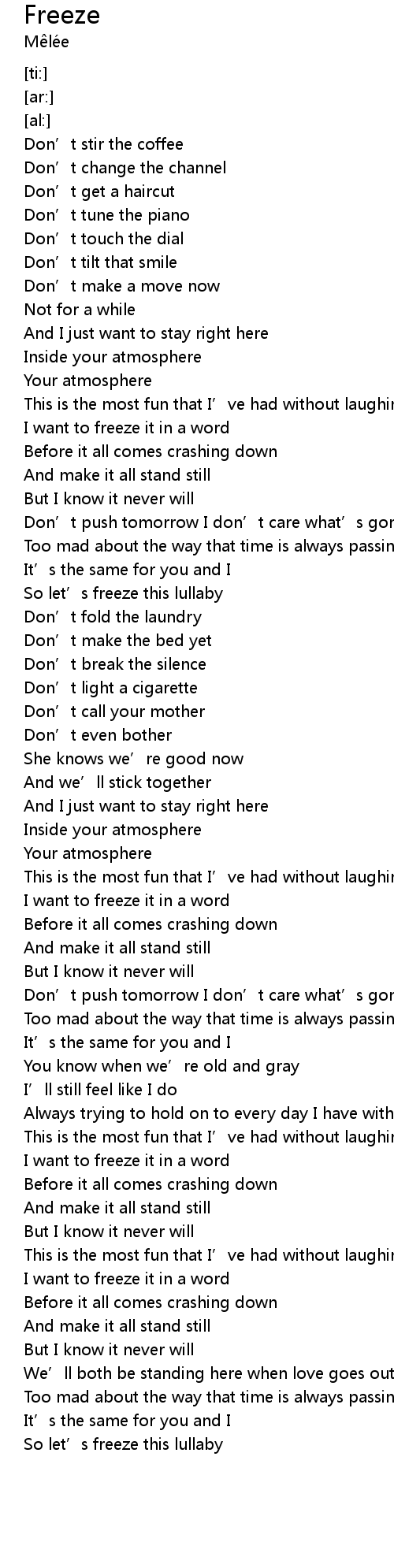 | [01:14.53] | So let' s freeze this lullaby |