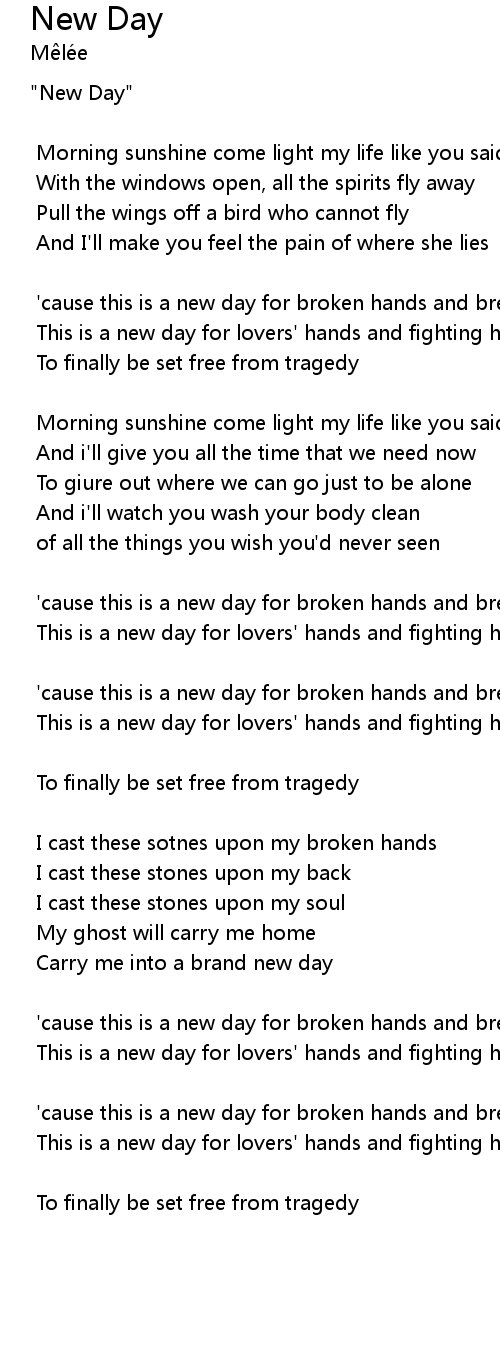 'cause this is a new day for broken hands and breaking backs |