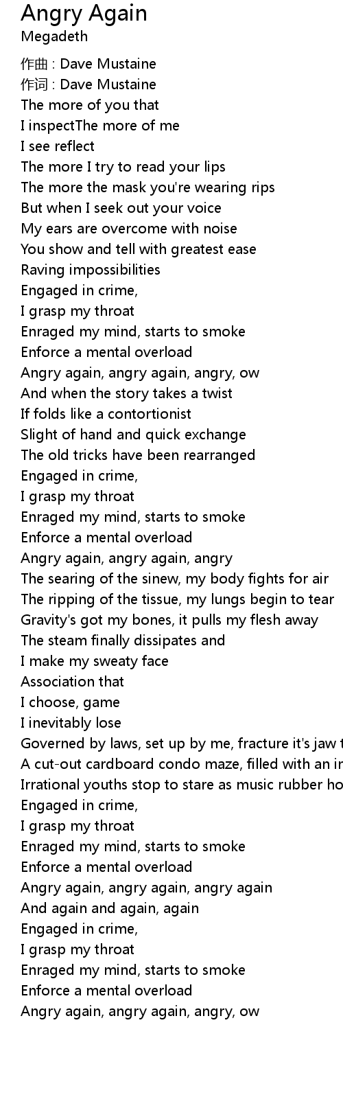 | Angry again, angry again, angry again | |