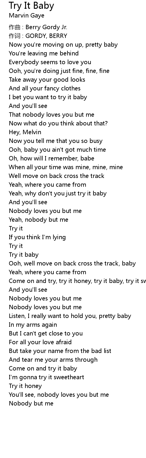 | Come on and try, try it honey, try it baby, try it sweet | |