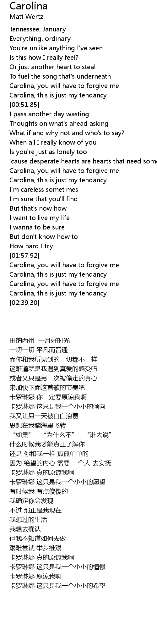 Carolina, you will have to forgive me |