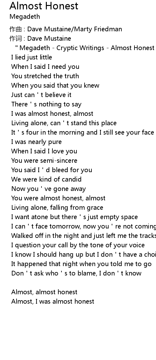| "Megadeth - Cryptic Writings - Almost Honest" | |