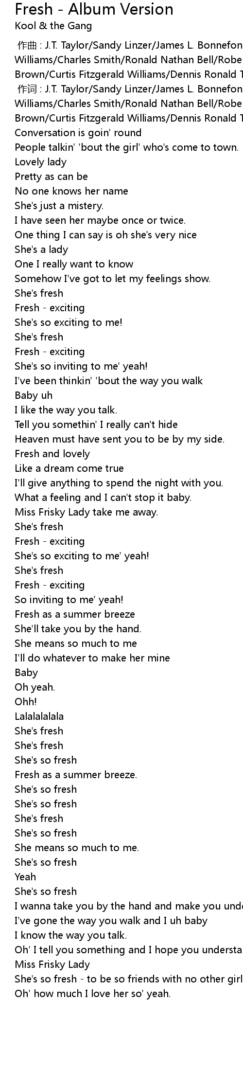 | [03:18.69] | She's so fresh - to be so friends with no other girl than lady. |