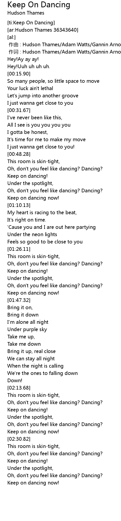 | [02:36.78] | Keep on dancing! |