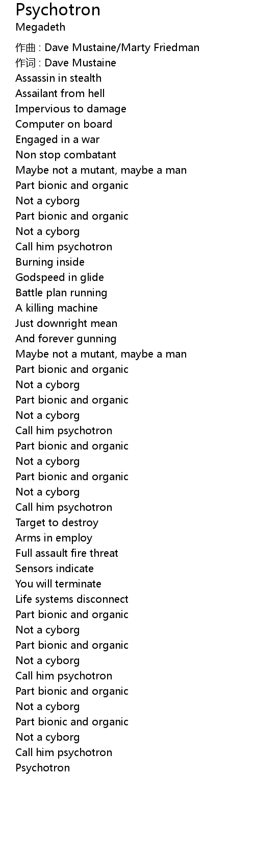 | 歌曲 | Psychotron |