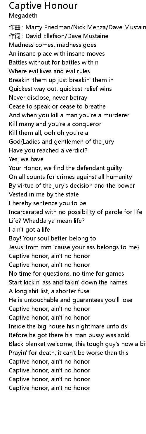 | Captive honor, ain't no honor |