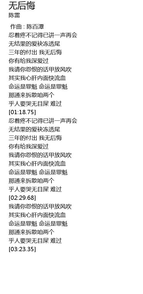 | [01:48.01] | sān nián de fù chū wǒ wú hòu huǐ |