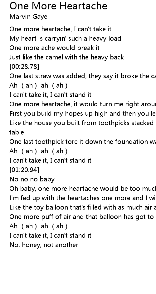 | [00:13.55] | One more heartache, I can't take it |