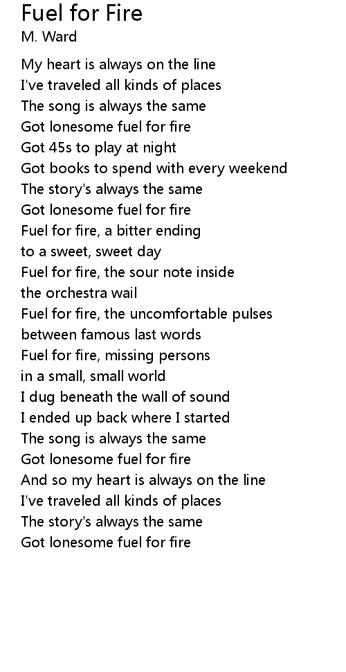 Got lonesome fuel for fire |