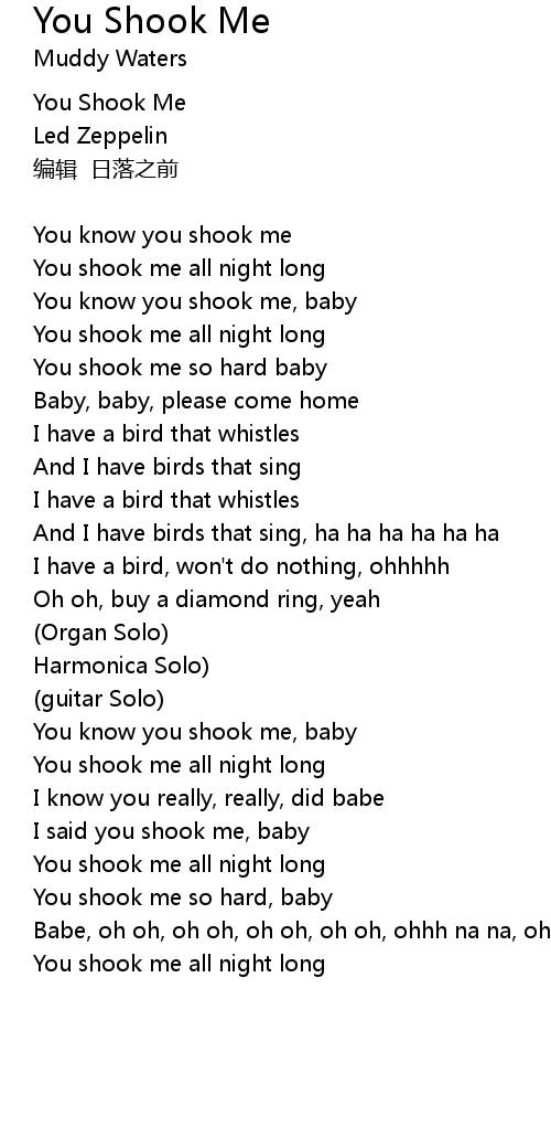 | 歌曲 | You Shook Me |