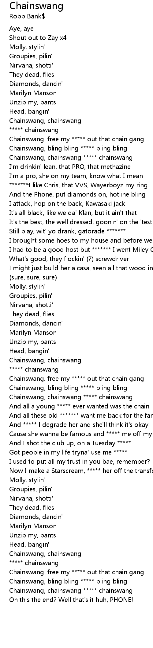 | [01:30.61] | Chainswang. free my ***** out that chain gang |