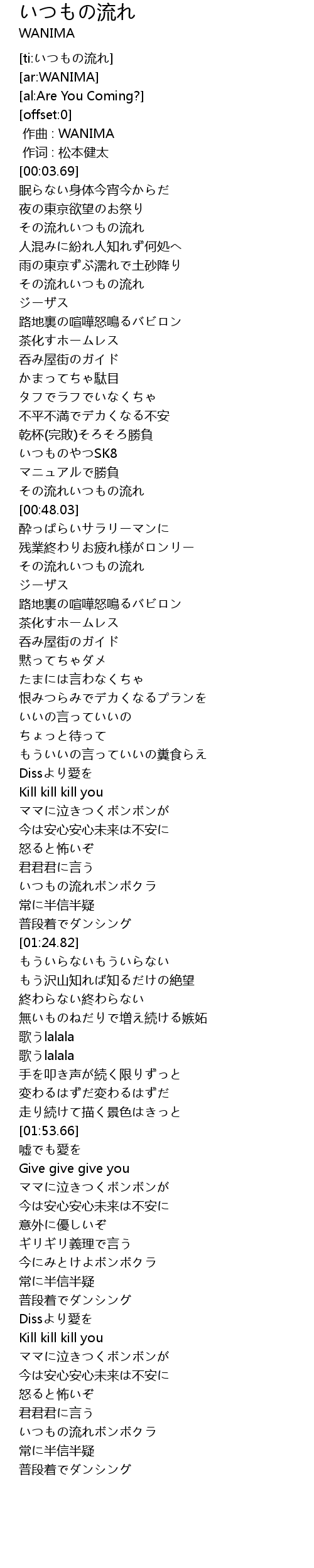 | [00:00.00] | zuo qu : WANIMA |