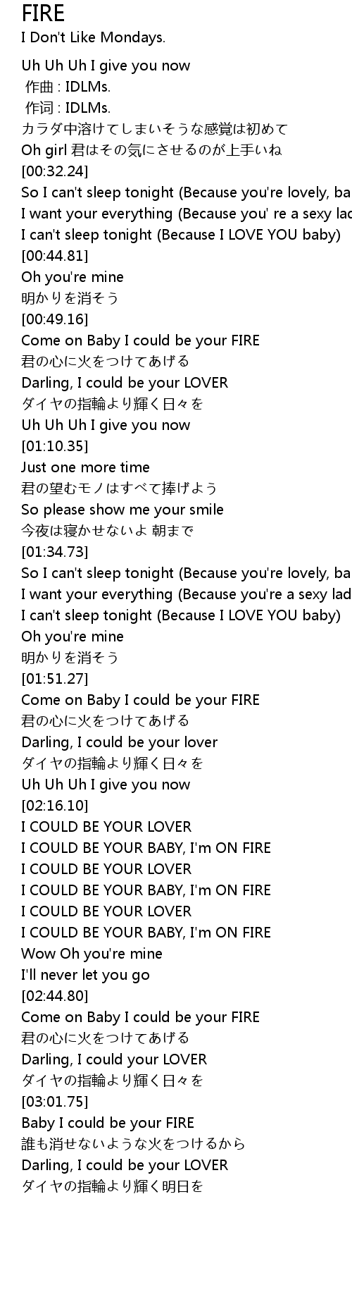 | [02:45.14] | Come on Baby I could be your FIRE |