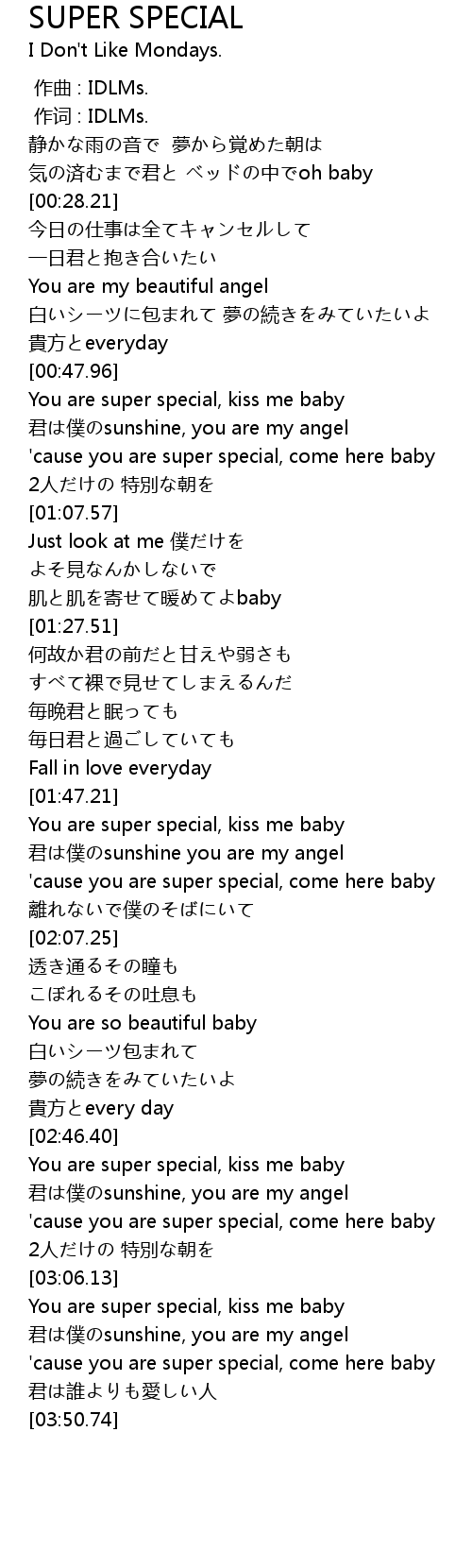 | [01:52.38] | 君は僕のsunshine you are my angel |