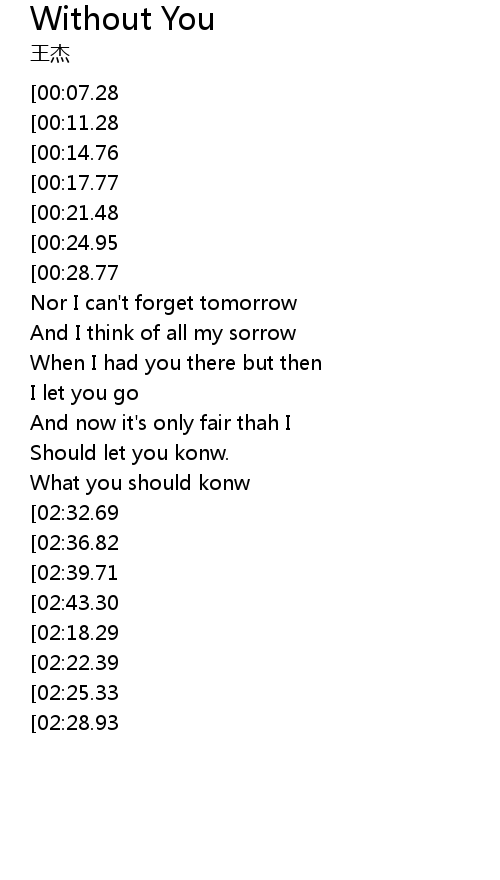 | [03:05.31][02:36.82][02:08.16][01:08.80] | if living is without you |