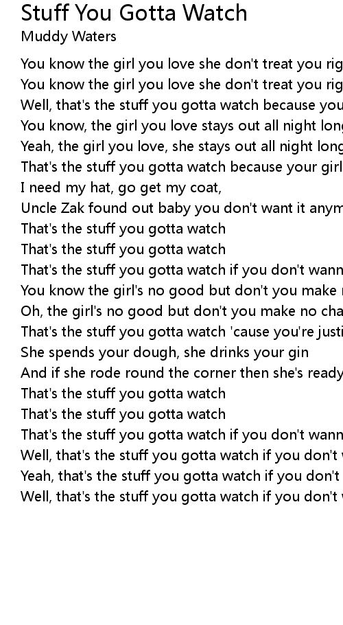 Well, that's the stuff you gotta watch if you don't wanna lose your girl. |