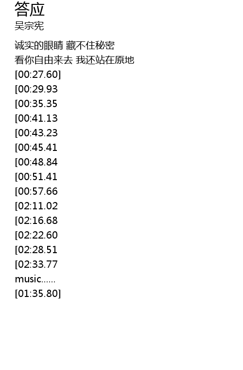 | [02:34.35][02:11.02][00:59.38] | △答应或拒绝改变不了谁 |