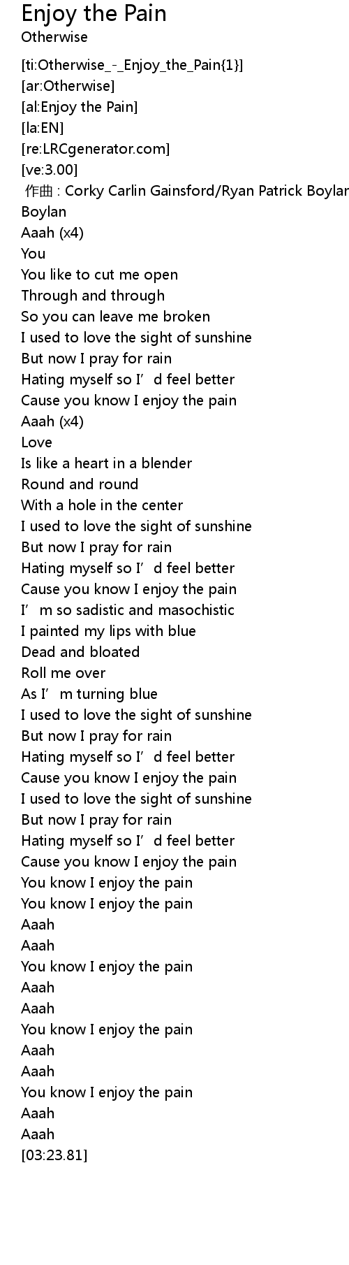 | [03:14.45] | You know I enjoy the pain |
