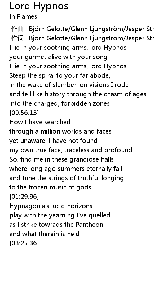 | [00:34.32] | I lie in your soothing arms, lord Hypnos |
