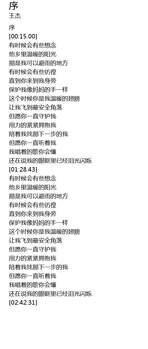 | [00:42.03] | 保护我像妈妈的手一样 |