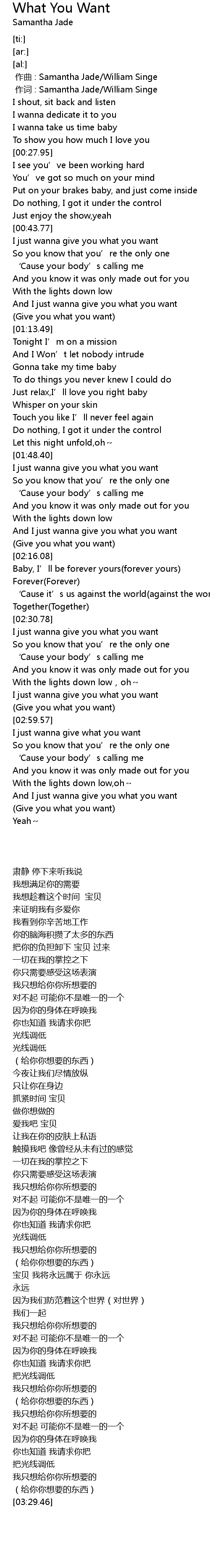 | [00:01.00] | zuo ci : Samantha Jade William Singe |
