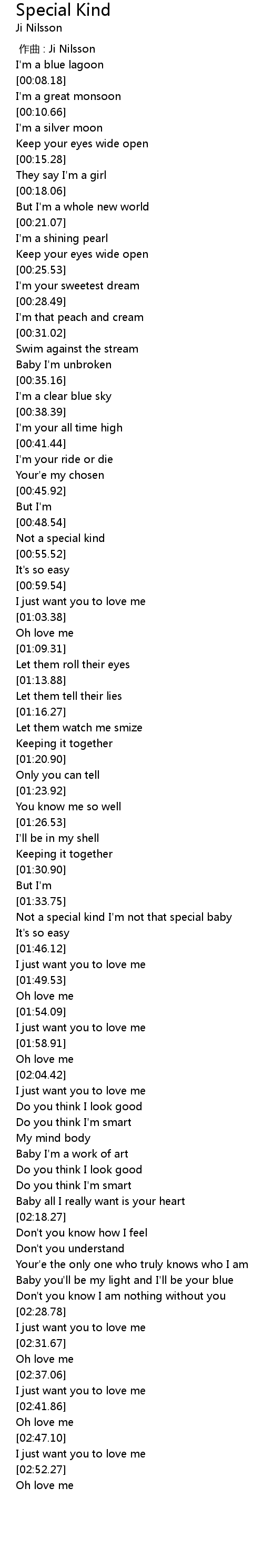 | [01:38.10] | Not a special kind I'm not that special baby |