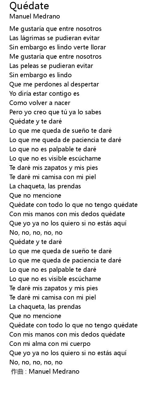 | 歌曲 | Quédate |
