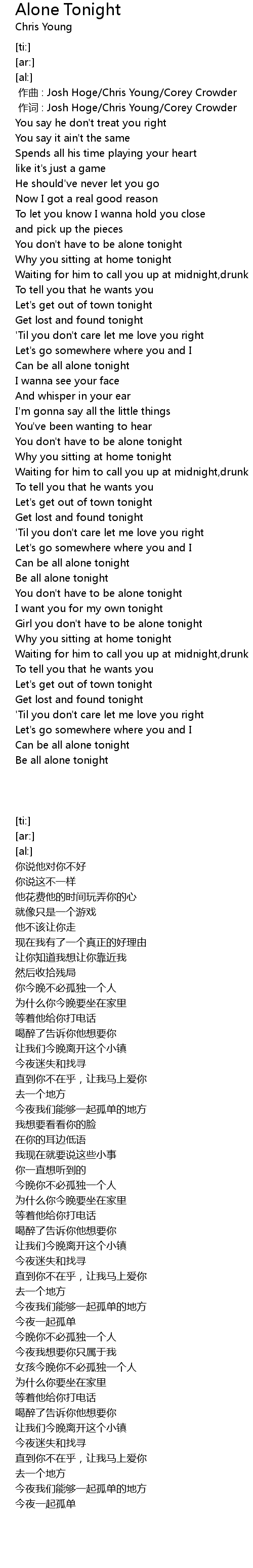 | [02:17.17] | Girl you don't have to be alone tonight |