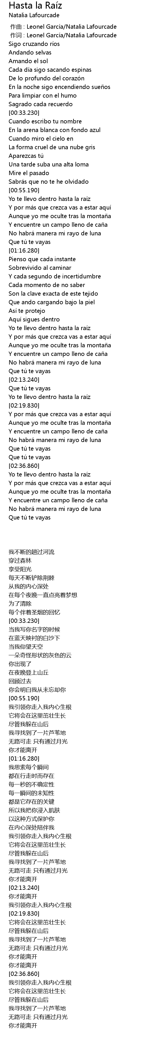 | [02:15.700] | Yo te llevo dentro hasta la rai z |