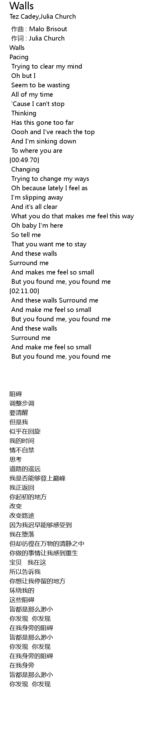 | [00:00.00] | Walls |