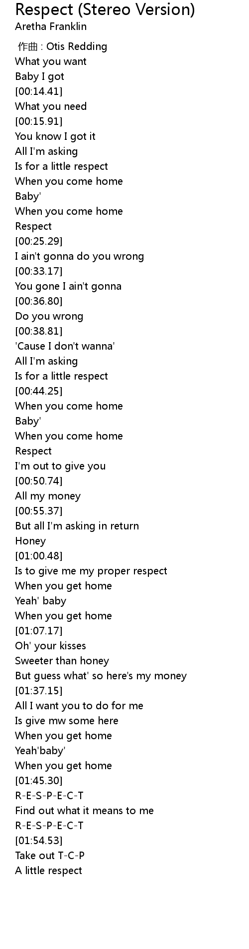 | [01:54.28] | R-E-S-P-E-C-T |