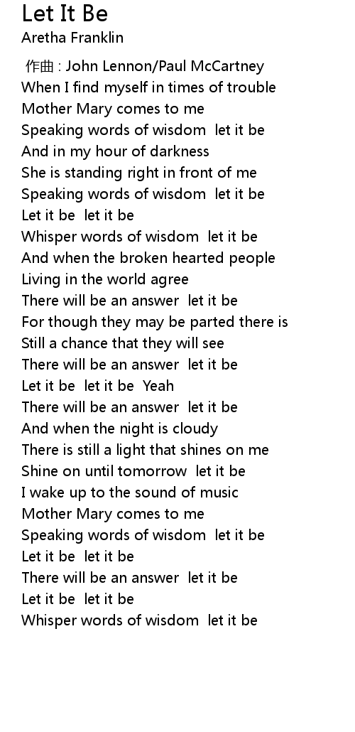 | [00:39.13] | Let it be let it be |