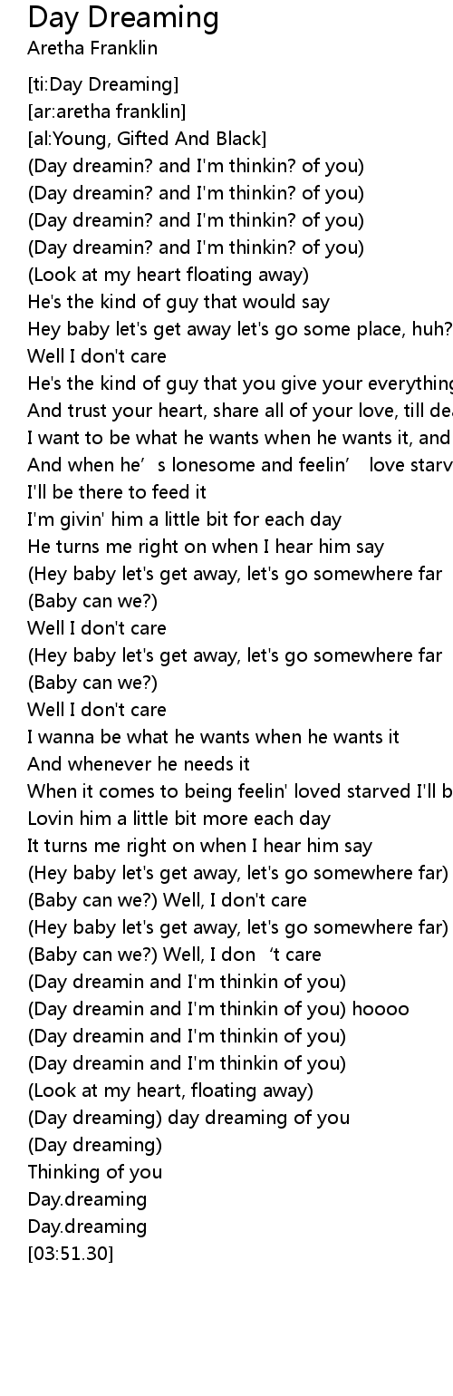 | [02:46.56] | (Day dreamin and I'm thinkin of you) |