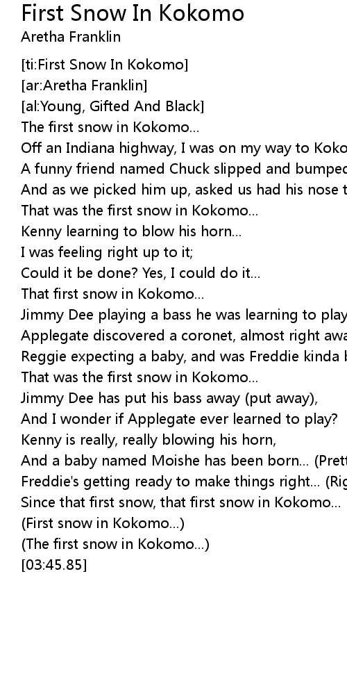 [03:26.98] Since that first snow, that first snow in Kokomo...
