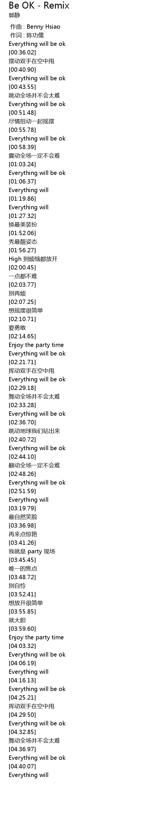 | [04:03.87] | Everything will be ok |