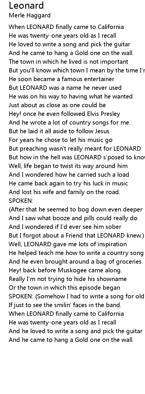 SPOKEN: (Somehow I had to write a song for old Tommy) |