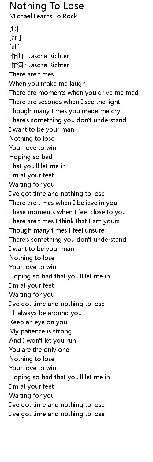 | [03:03.64] | Nothing to lose |