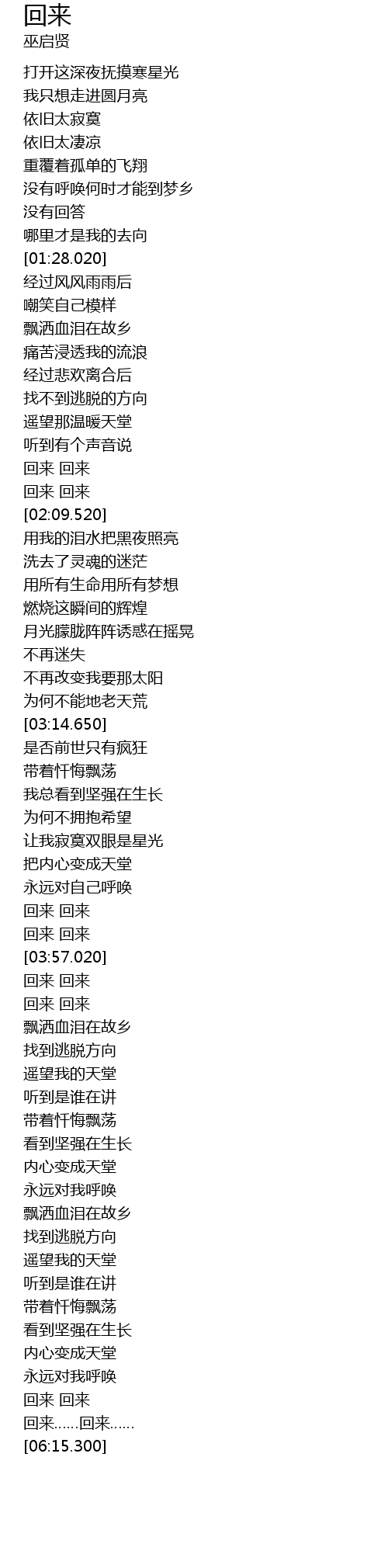 | [01:08.580] | 没有呼唤何时才能到梦乡 |