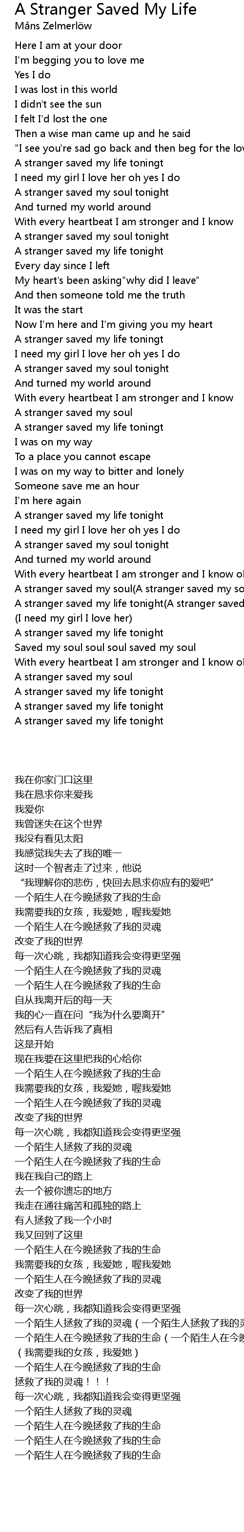 A stranger saved my life tonight(A stranger saved my life tonight) |