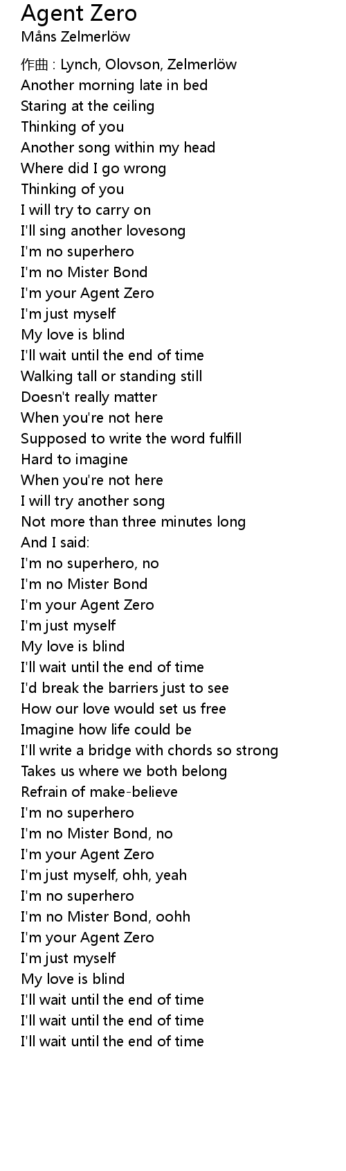 | 歌曲 | Agent Zero |