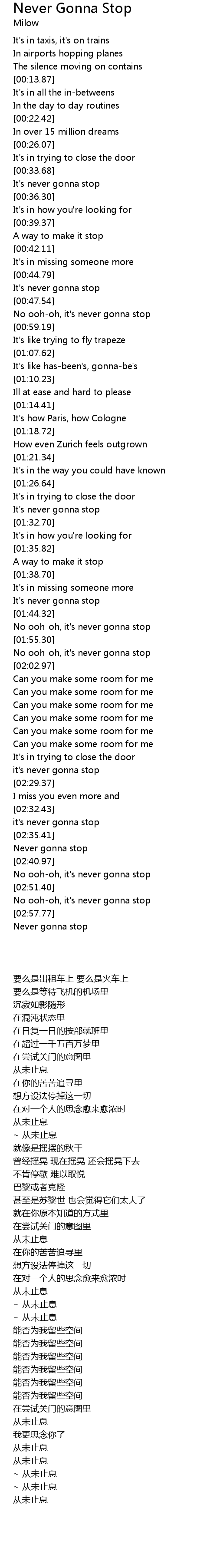Never gonna stop |