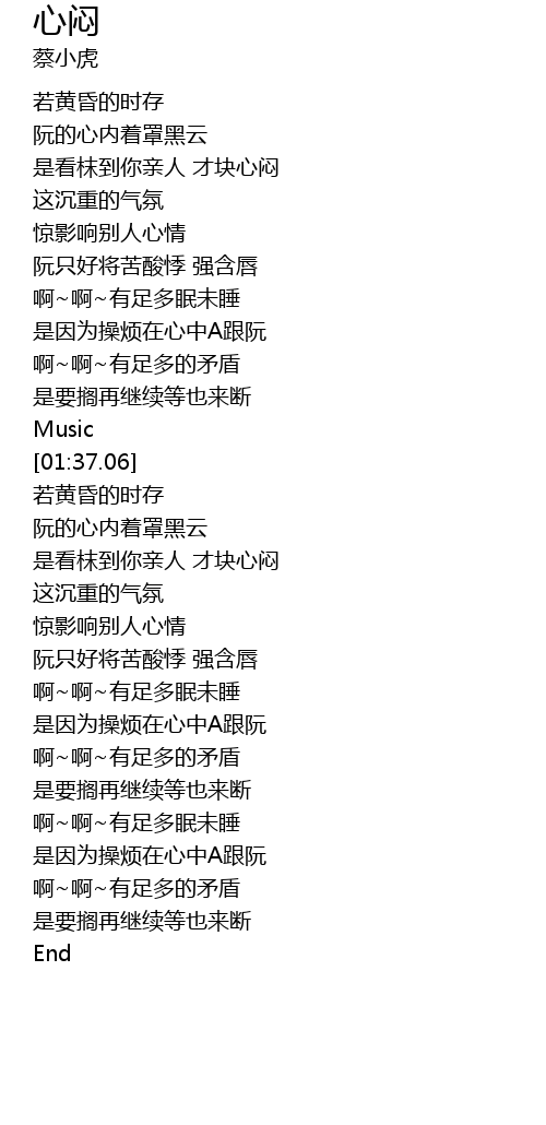 | [02:22.90] | 阮只好将苦酸悸 强含唇 |