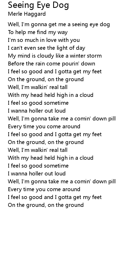 Well, I'm gonna get me a seeing eye dog |