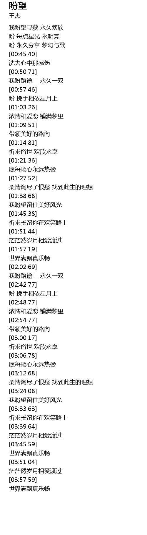 | [00:39.95] | 盼 永久分享 梦幻与歌 |