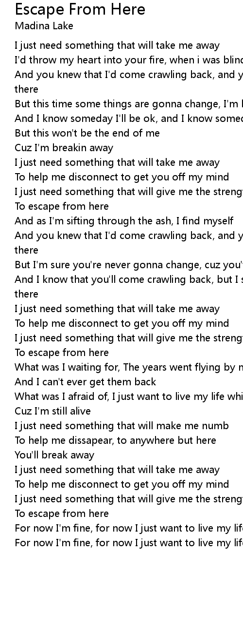 To help me dissapear, to anywhere but here |